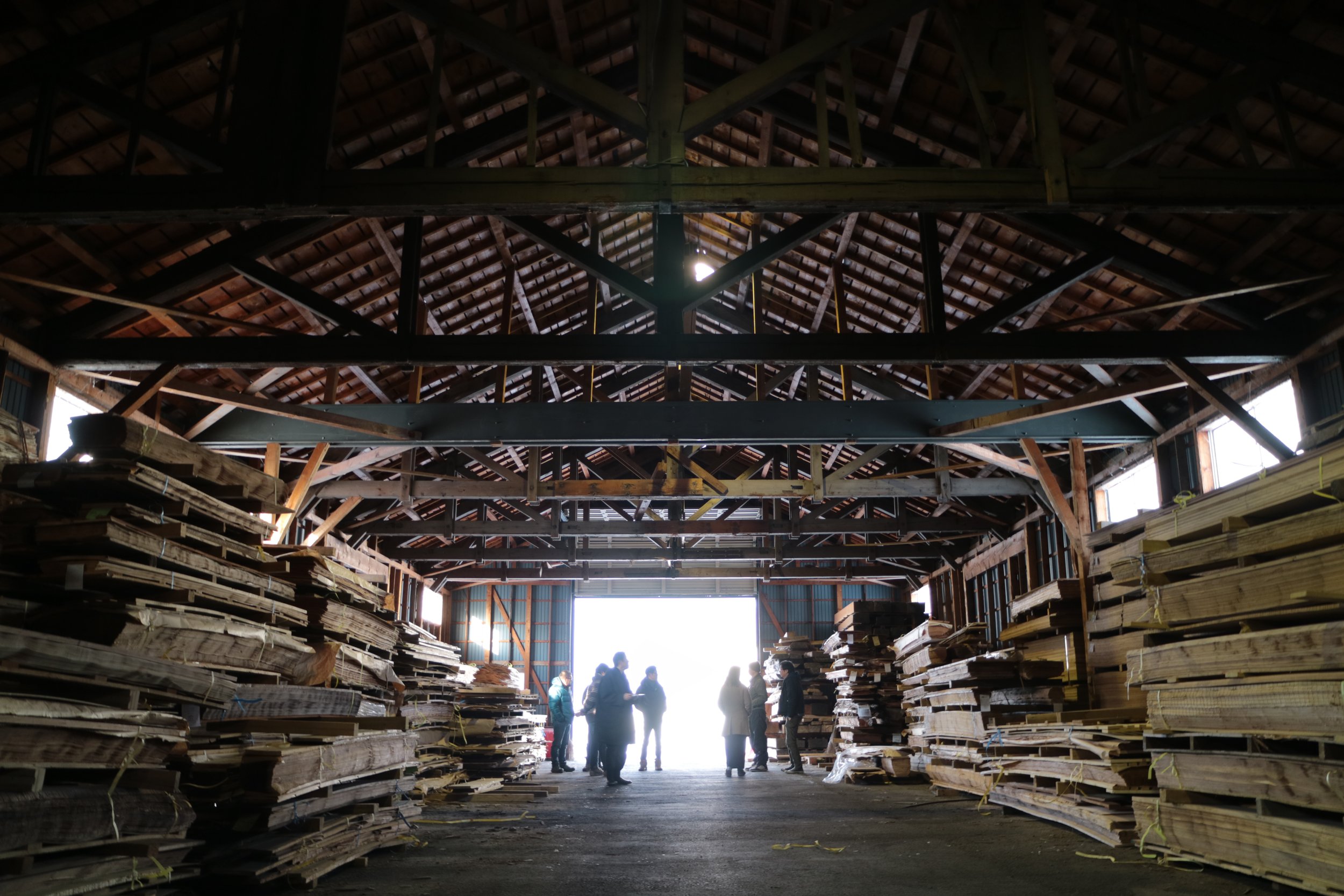 Taisetsu Mokko's veneer warehouse. This vast space has occasionally been used as an exhibition venue since 2017.