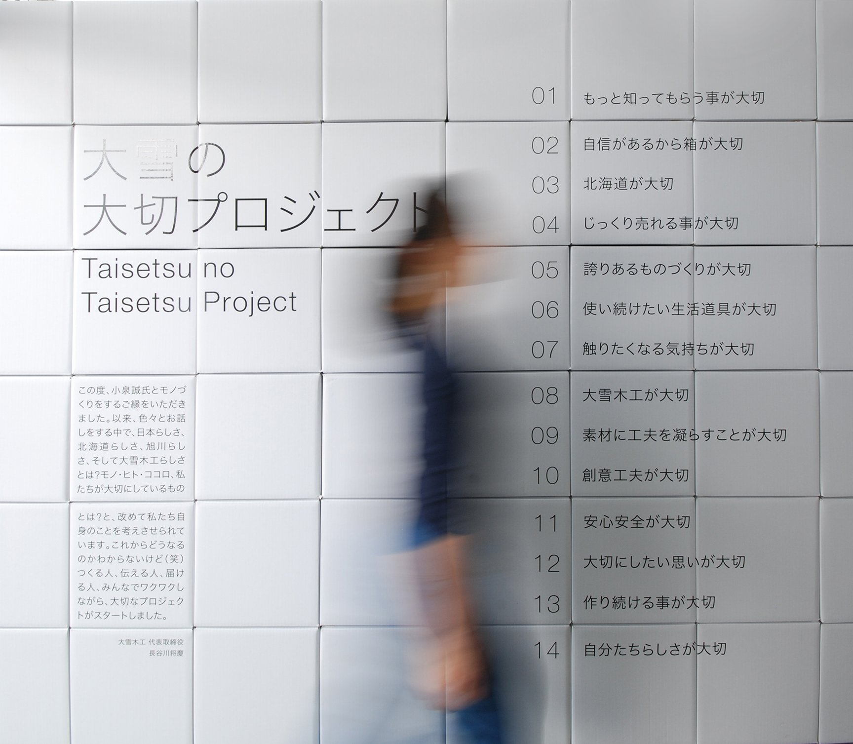 One example is his collaboration with Taisetsu Mokko in Asahikawa. For the first ten years, little product design occurred. Koizumi met president Mr. Hasegawa in 2013, when the makers could not take pride in their work. Koizumi candidly said, “It won’t be easy, and it will take time.”