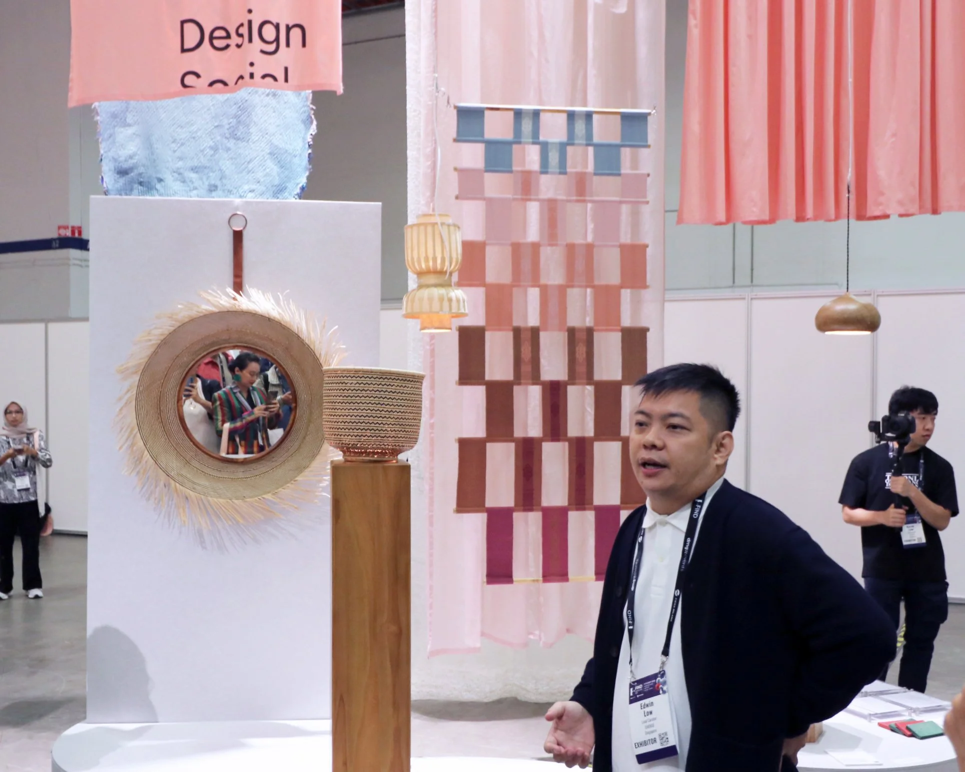 DESIGN SOCIALの狙いを語るEdwin。左手のミラーと中央のラタン製の物入れは、インドネシアのAlvin Tjitrowirjoによる「Ndare」。カリマンタン島のソーシャルエンタープライズHANDEPとのコラボレーションによるプロダクトだ